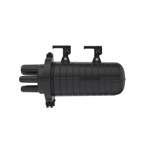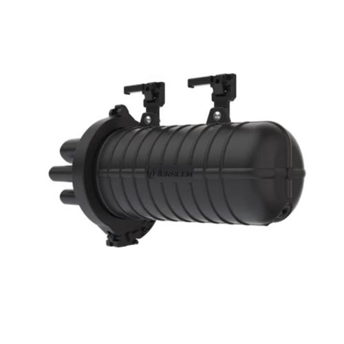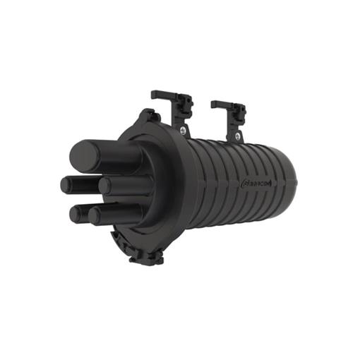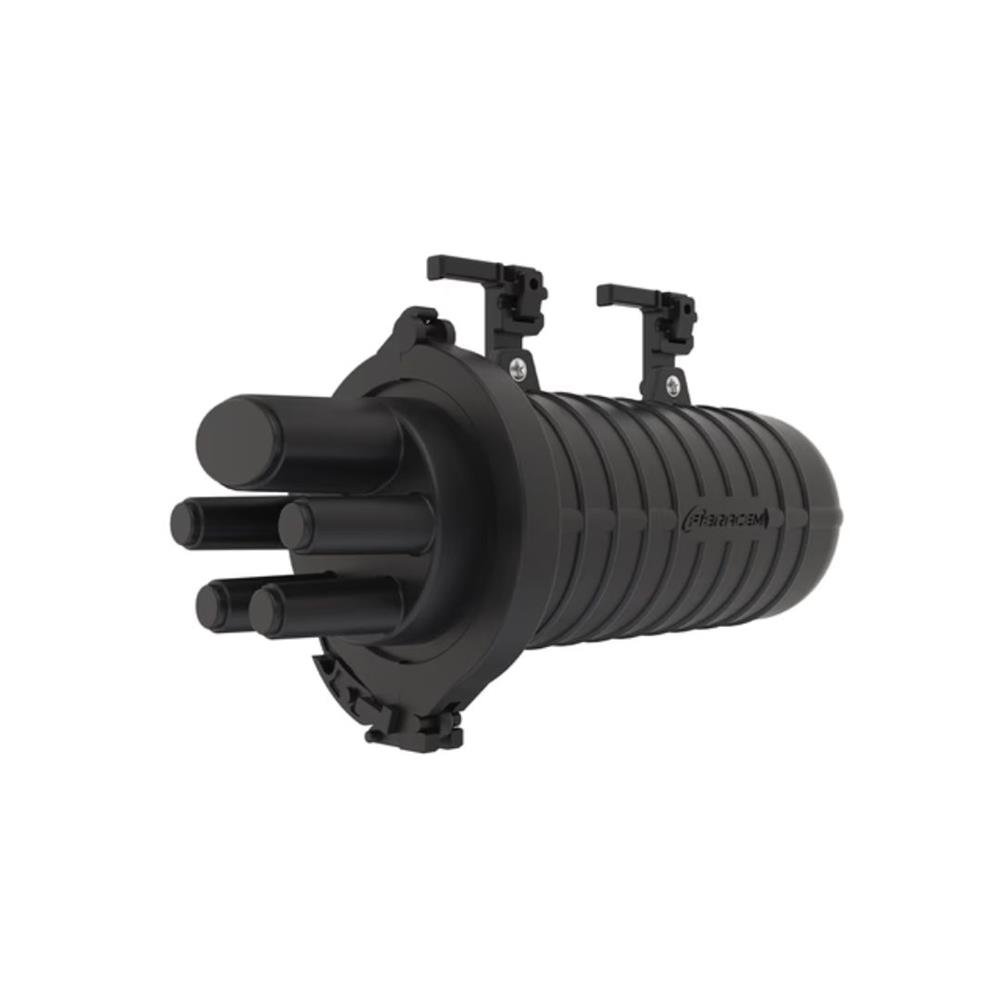 Sua estrutura compacta conta com 1 entrada oval (para cabos de 10 a 25 mm) e 4 saídas circulares (para cabos de 5 a 18 mm), vedadas por tubos termocontráteis (SVT). A união da base com a cúpula é realizada por abraçadeira mecânica, garantindo grau de proteção IP68.