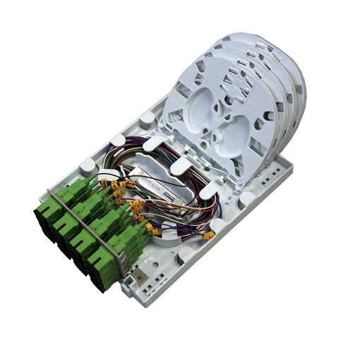 Desenvolvido para fazer o gerenciamento e fusão das fibras, splitters, cabos ópticos verticais e os cabos internos e as derivações assinantes através de adaptadores. Solução flexível, segura e de fácil instalação para a organização e manutenção de fibras.