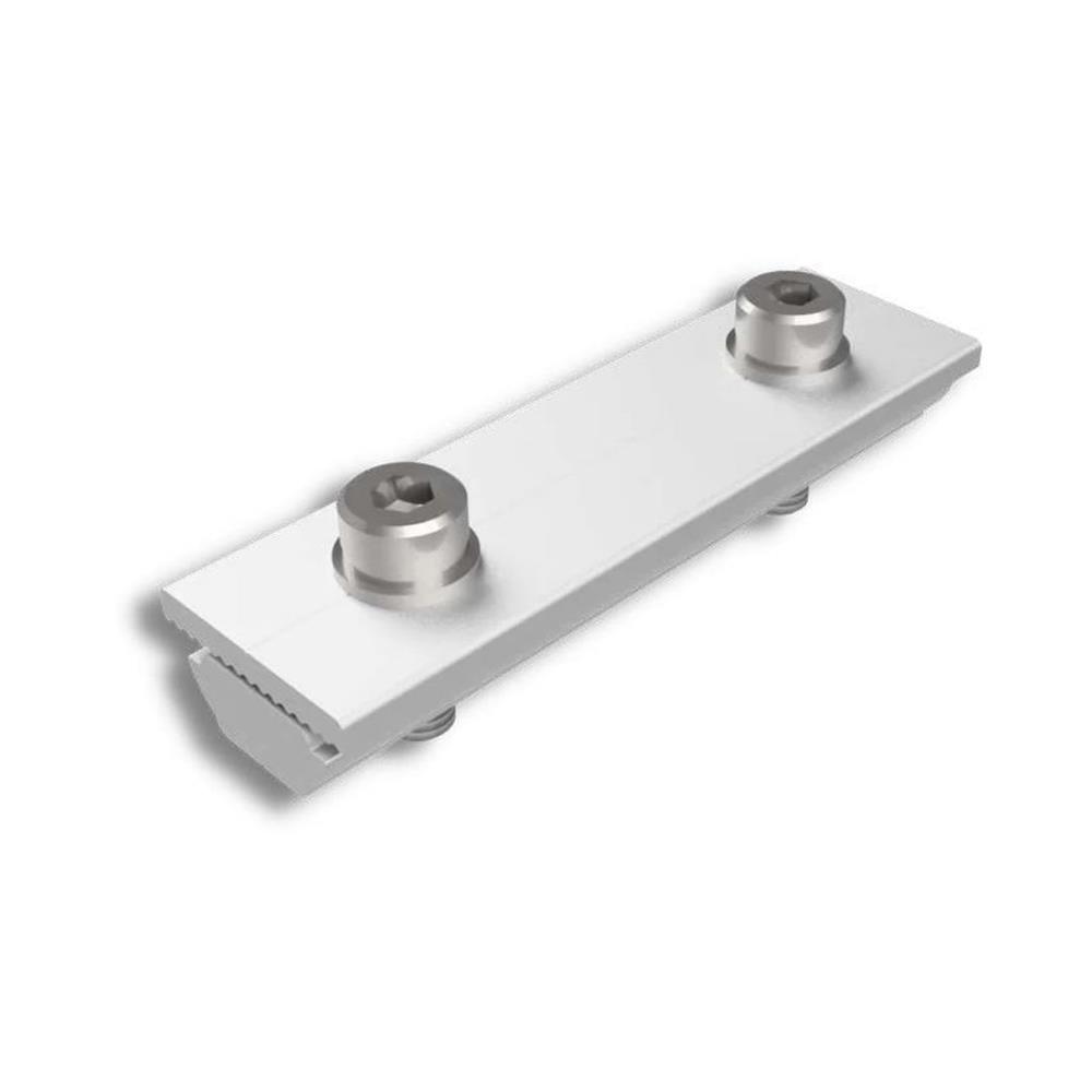 Acessório utilizado para dar continuidade aos trilhos. Possui 10cm de comprimento e uma chapa para auxiliar o alinhamento e garantir a união dos trilhos. Sistema de encaixe rápido. Peça em Alumínio 6005-T5 anodizado.
