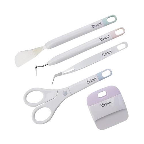 O Kit Básico de Ferramentas Cricut traz 5 peças essenciais para trabalhos manuais e personalizações. Inclui espátula, raspador, alfinete (weeder), pinça e tesoura de precisão, ideais para cortes e acabamentos em vinil, papel e materiais de transferência térmica. Compatível com todas as máquinas Cricut, oferece praticidade e precisão para artesãos, criadores e entusiastas do DIY.