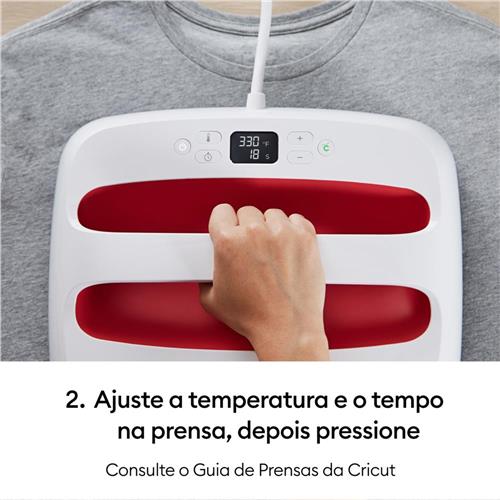 A Prensa Térmica Cricut EasyPress 2 é uma ferramenta versátil e eficiente, perfeita para criar projetos exclusivos de estamparia e sublimação. Com aquecimento ajustável de até 205 °C, ela é ideal para uma ampla variedade de materiais, incluindo tecidos, madeiras, papéis e muito mais. A base antiaderente elimina a necessidade de teflon, simplificando o processo de aplicação. Esta prensa térmica não só é adequada para estamparia com transfers, mas também é ideal para projetos de sublimação, já que a temperatura máxima alcançada é perfeita para tintas sublimáticas. Isso a torna uma ferramenta indispensável para diversos tipos de criações. A base da Cricut EasyPress 2 aquece de forma rápida e uniforme, combinando a velocidade de uma prensa térmica com a praticidade de um ferro de passar. Isso resulta em aplicações rápidas, perfeitas e duráveis, resistentes a lavagens. O painel eletrônico permite o ajuste preciso de tempo e temperatura, adaptando-se às necessidades específicas de cada projeto.