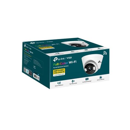 A VIGI C440-W é uma câmera IP Turret interna com resolução de 4 MP que oferece imagens coloridas 24 horas por dia mesmo em ambientes totalmente escuros, graças ao sensor de alta sensibilidade e luzes suplementares integradas. Ela opera via Wi-Fi (2,4 GHz) ou com conexão com fio e possui lente fixa de 4 mm com abertura F1.6, campo de visão horizontal de aproximadamente 80°. O alcance de visão noturna (LED IR ou LED branco) chega a cerca de 30 metros. Há compressão de vídeo inteligente com H.265+, detecção inteligente de eventos como intrusão, cruzamento de linha, manipulação de vídeo, áudio bidirecional, e opção de armazenamento local com cartão microSD (até 256 GB). A câmera funciona em faixas de temperatura de –30 °C a 60 °C e suporta condições de umidade de até 95 %. Indica-se para uso residencial ou comercial interno, vigilância de ambientes como salas, corredores, lojas ou escritórios onde se deseja monitorar com clareza, cor e com recursos inteligentes sem a necessidade de iluminação externa constante.