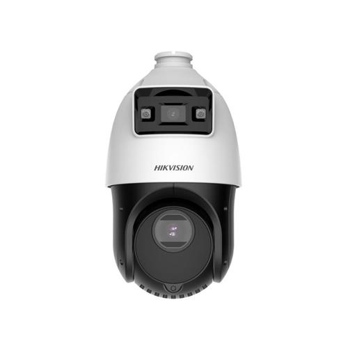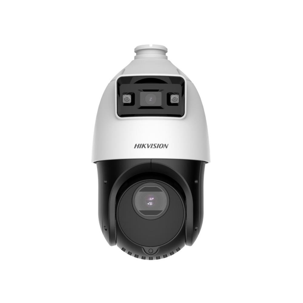 A Hikvision DS-2SE4C425MWG-E/14F0 é uma câmera IP PTZ (pan/tilt/zoom) profissional com tecnologia TandemVu e sensor duplo que combina visão ampla e detalhada simultaneamente, oferecendo resolução máxima de 2560×1440p (4MP) em ambos os canais e zoom óptico 25× com 16× digital para cobrir grandes áreas com precisão; equipada com tecnologia ColorVu e IR inteligente com alcance de até 100?m, WDR, HLC, BLC e 3D DNR para imagens de qualidade em baixa iluminação, suporte a PoE+/12VDC para alimentação e rede, protocolos de rede (ONVIF/HTTPS/TCP-IP) e compatibilidade com software HikCentral/iVMS-4200, recursos avançados de vídeo (H.265, ROI), detectores inteligentes com foco em pessoas e veículos baseados em deep learning (AcuSense), funções PTZ com 360° pan infinito, tilt de –15° a 90°, 300 presets, patrulhas e scans programáveis, armazenamento local via microSD até 512GB e proteção IP67 com proteção contra surtos elétricos, indicada para vigilância externa em estacionamentos, perímetros comerciais, áreas industriais e espaços públicos que exigem monitoramento dinâmico e detalhado.