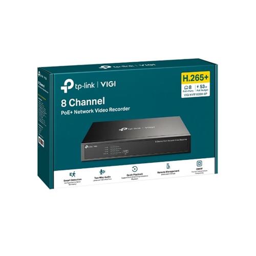 O TP-Link VIGI NVR1008H-8P é um gravador de vídeo em rede profissional com 8 canais IP e 8 portas PoE+ integradas, permitindo alimentar e conectar câmeras com apenas um cabo de rede. Suporta resolução de gravação de até 8 MP, saída HDMI em 4K, compressão avançada H.265+, e reprodução simultânea de até 8 câmeras. Possui interface SATA compatível com HD de até 16 TB, largura de banda de entrada de 80 Mbps, e recursos inteligentes como detecção de movimento, intrusão e classificação de pessoas e veículos. Ideal para sistemas de segurança residenciais, comerciais e corporativos.